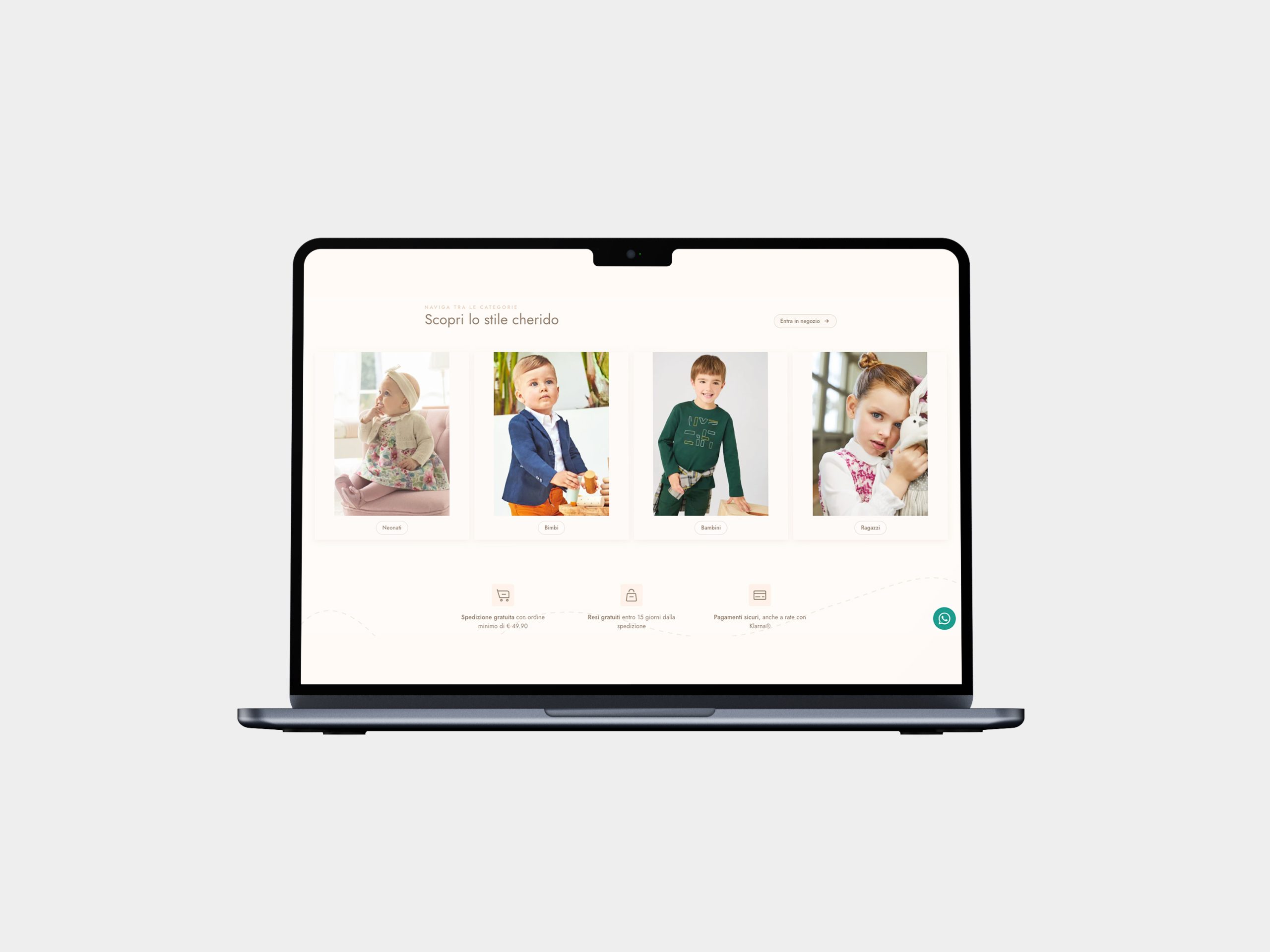 Il progetto e-commerce per Cherido è stato creato per offrire un’esperienza di acquisto semplice e di qualità per abbigliamento bambino/a e ragazzo/a. Abbiamo realizzato un sito e-commerce facile da usare, dove gli utenti possono esplorare con facilità le diverse categorie di prodotti e trovare informazioni dettagliate su ogni articolo d’abbigliamento. Il catalogo è interamente gestito dal software gestionale del cliente (Magic Store ®) e si interfaccia in tempo reale con il sito realizzato da noi. Il design è pensato per garantire un’esperienza di navigazione chiara e intuitiva anche per gli utenti meno esperti. Ogni aspetto è customizzato secondo esigenze specifiche.