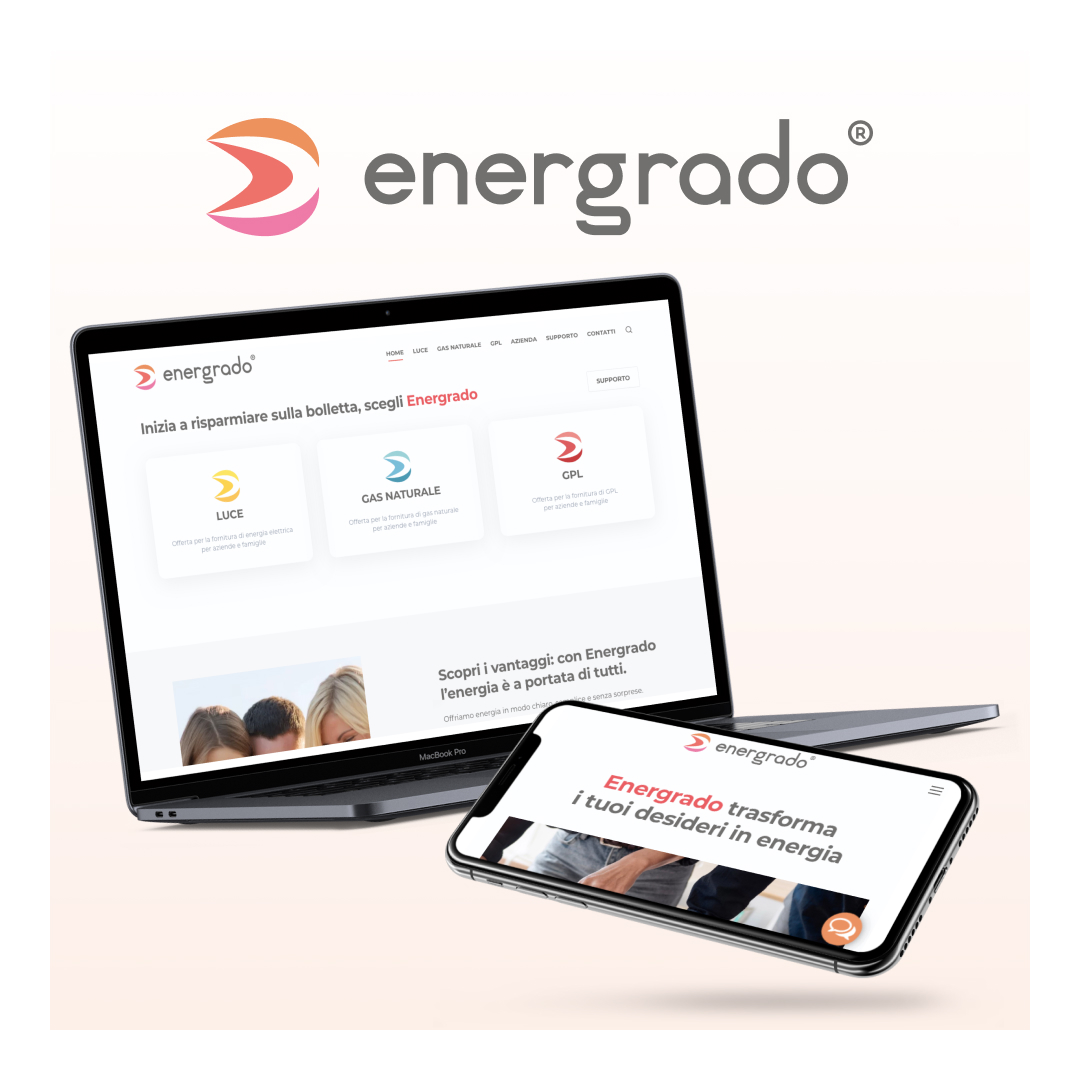Nel marchio abbiamo voluto trasmettere l’idea della fiamma, simbolo di energia, in particolare quella per il riscaldamento. I colori stessi richiamano l’idea di energia che trasmette calore. Il pittogramma evidenzia la lettera iniziale “E”, che è ondulata per richiamare la sinuosità di una fiamma, simbolo per eccellenza della combustione. Abbiamo anche voluto dare un tono moderno e amichevole, per rendere il logo più riconoscibile, creando un pittogramma dalle forme semplici e molto ben visibile anche da lontano. Il sito di Energrado, è stato realizzato in maniera funzionale, con una sezione interna di supporto, nel quale l’utente ha la possibilità di ottenere le giuste informazioni per lo specifico servizio.