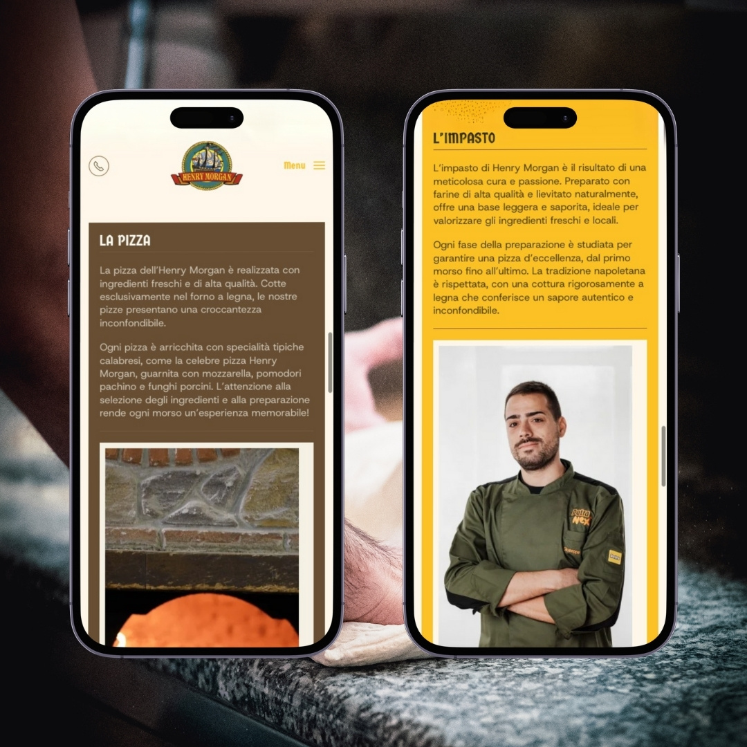 Realizzazione di un sito web per la pizzeria Henry Morgan Pub con un design accattivante, pensato per valorizzare il locale, gli eventi e le pizze.