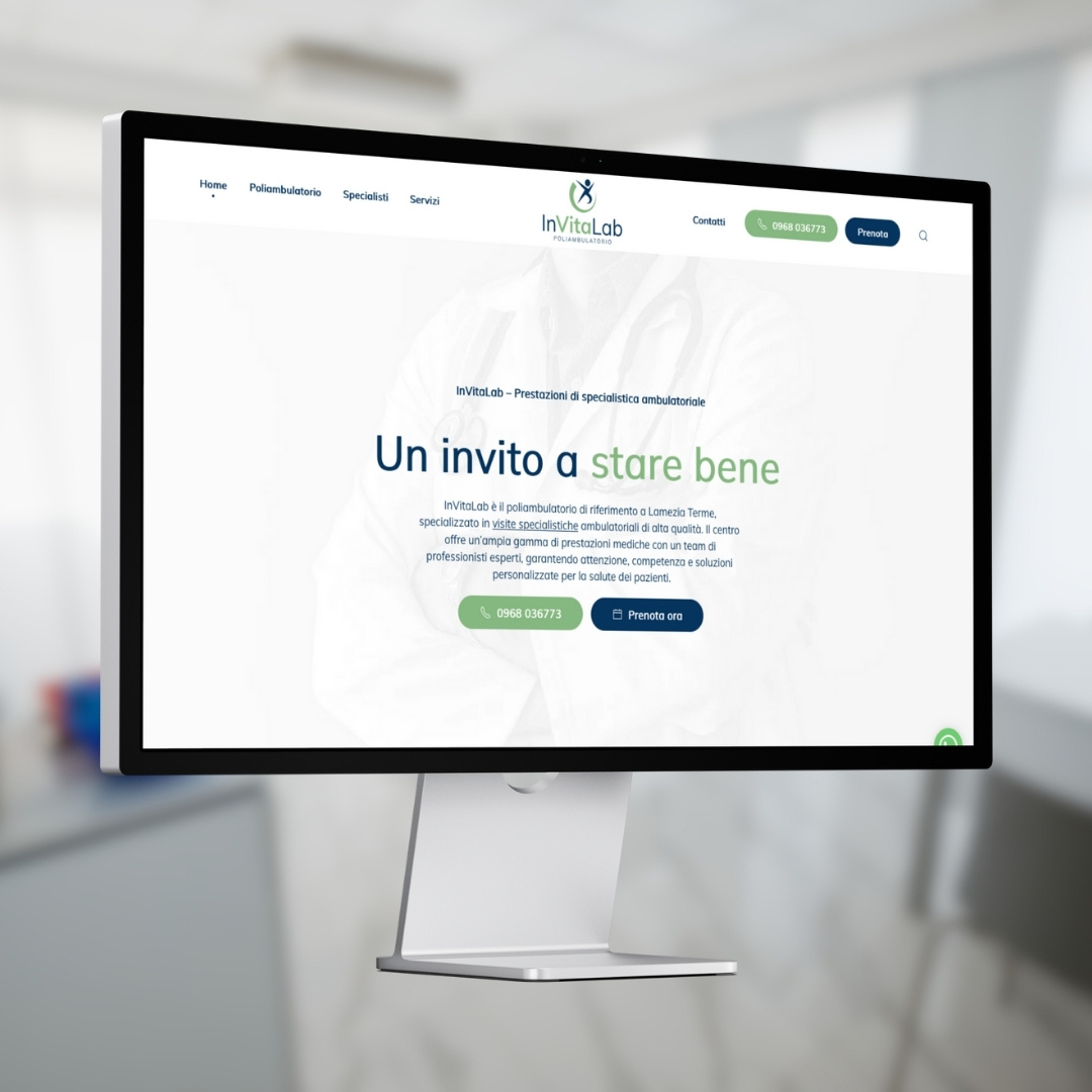 Realizzazione di un sito web professionale per poliambulatorio InvitaLab, con struttura intuitiva e sezioni dedicate ai servizi. Realizzata anche l’identità visiva.
