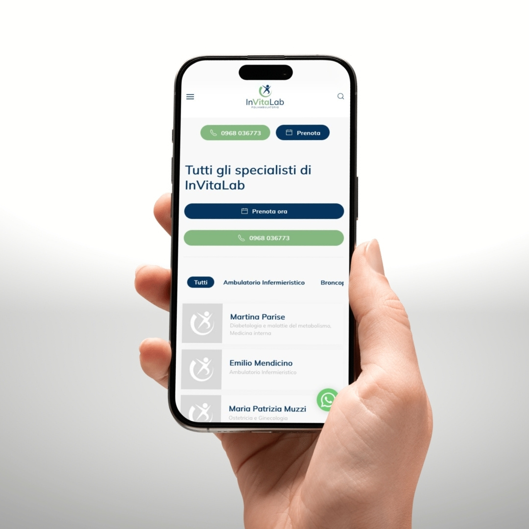 Per InVitaLab abbiamo realizzato un sito responsive ed intuitivo, con sezioni dedicate alle diverse specializzazioni mediche. Il design pulito e professionale facilita la navigazione e la prenotazione online, migliorando l’esperienza dell’utente e l’efficienza del poliambulatorio. Il sito riflette l’impegno di InVitaLab nel fornire cure personalizzate e di alta qualità, mettendo sempre la persona al centro del percorso di salute. Abbiamo realizzato anche l’identità visiva del brand, progettando un logo che riflette affidabilità, innovazione e centralità della persona nel percorso di cura.
