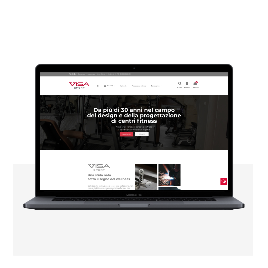 Visasport è un’azienda fieramente italiana che si occupa di costruzione di macchinari per il fitness, completamente made in Italy, e tra le più apprezzate nel settore. Abbiamo realizzato il restyle del logo storico, mantenendo le colorazioni col quale l’azienda è nota in tutto il mondo. Il sito è stato completamente ridisegnato per rispondere a due importanti esigenze: Storytelling e notorietà del brand. Sul sito abbiamo inserito anche un “potente motore” che gestisce l’e-commerce e le richieste di preventivo personalizzate per chi vuole una “palestra su misura”. Il processo di comunicazione del marchio passa attraverso un certosino lavoro di redesign completo e di immagine coordinata e riconoscibile. Quando i clienti ci lasciano lo spazio di esprimerci diamo il nostro meglio.